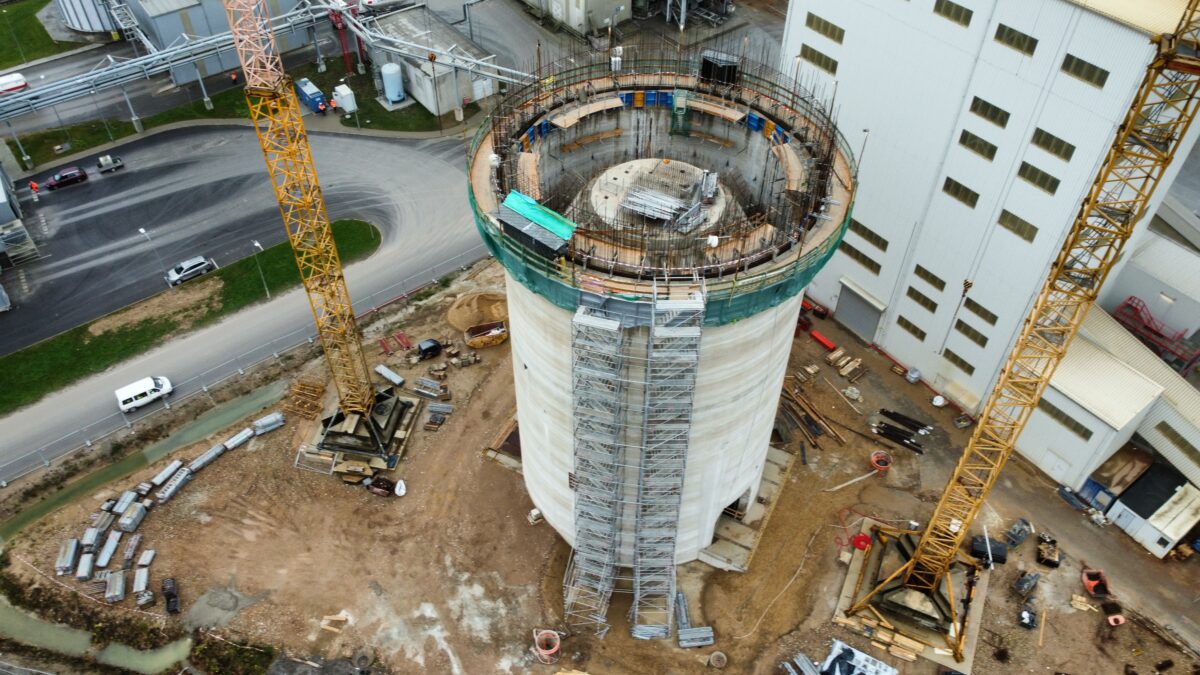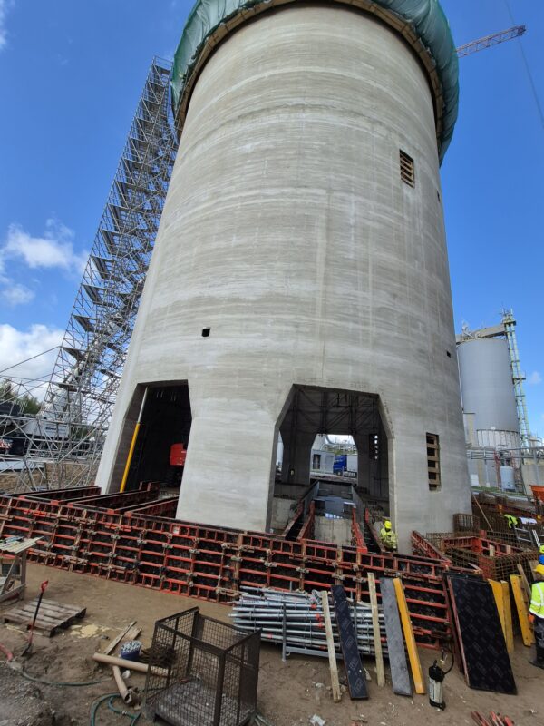 MehrkammersiloBroceni, Lettland, 2025 Durchmesser: 20 mHöhe: 65,50 mBauherr: Schwenk ZementTragwerksplanung: Peter und Lochner, Stuttgart